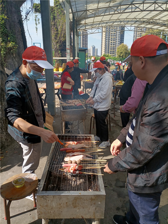 時間不知不覺到了中午,我們的午餐便是充滿樂趣的BBQ,準(zhǔn)備的食材和飲料一應(yīng)俱全。很快大家便分好了隊(duì)伍,有序的安排工作;區(qū)分食材、清洗、調(diào)制醬料、串制食材,大家配合默契,展現(xiàn)了友愛互助的團(tuán)隊(duì)精神。更有多才多藝的同事?lián)u身一變成了燒烤師傅,現(xiàn)場氣氛非常濃烈,大家一邊享受自己燒烤的美食,一邊聊著生活和工作中的一些趣事,歡聲笑語隨著縷縷炊煙縈繞回蕩空中,好不HAPPY。