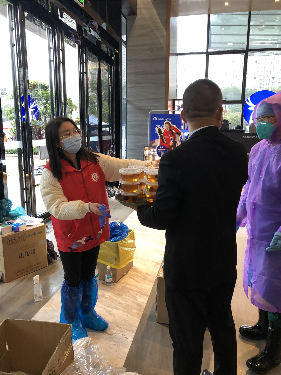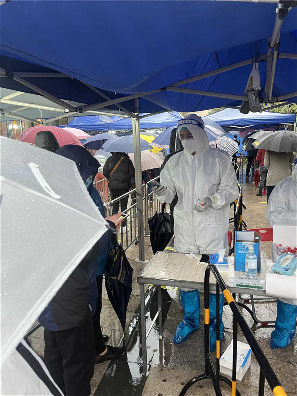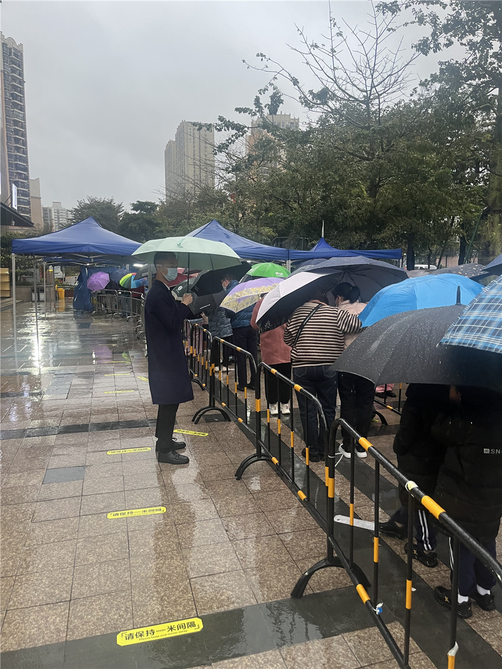2月20日,是坂田街道核酸篩查工作最關(guān)鍵的時期,雖然是周日,但兩個管理處的全體員工放棄休息,一如既往的堅守崗位,配合街道辦進(jìn)行核酸采樣工作。由于是周末,排隊進(jìn)行核酸 檢測的隊伍從創(chuàng)匯國際中心一樓大堂,排到了創(chuàng)匯國際中心前面的廣場,當(dāng)天,刮風(fēng)又下著大雨,天氣特別寒冷,氣溫只有6度,社區(qū)群眾都打著傘,在寒風(fēng)大雨中排著長隊,情緒難免有點波動。為了確保群眾盡快有序完成核酸采樣,減少等候時間,我管理處員工冒著大雨和寒風(fēng),在隊伍中來回走動,指引社區(qū)群眾提前進(jìn)行核酸掃碼登記,維現(xiàn)場秩序,安撫大家的情緒。管理處還組織員工現(xiàn)場熬制姜茶,為工作人員及現(xiàn)場群眾送上暖暖的姜茶,一杯杯熱姜茶,讓連日奮戰(zhàn)在一線的醫(yī)護(hù)人員倍感溫暖,讓在寒風(fēng)和大雨中排長隊的群眾無不感動,讓在場所有人員感受到眾志成城,抗擊疫情的力量和決心。抗擊疫情,人人有責(zé),讓我們攜手同心,用信心構(gòu)建起抗擊疫情的長效疫苗,用實際行動貢獻(xiàn)自己的點滴力量,讓愛凝聚抗擊疫情的強(qiáng)大合力,迎戰(zhàn)疫情。