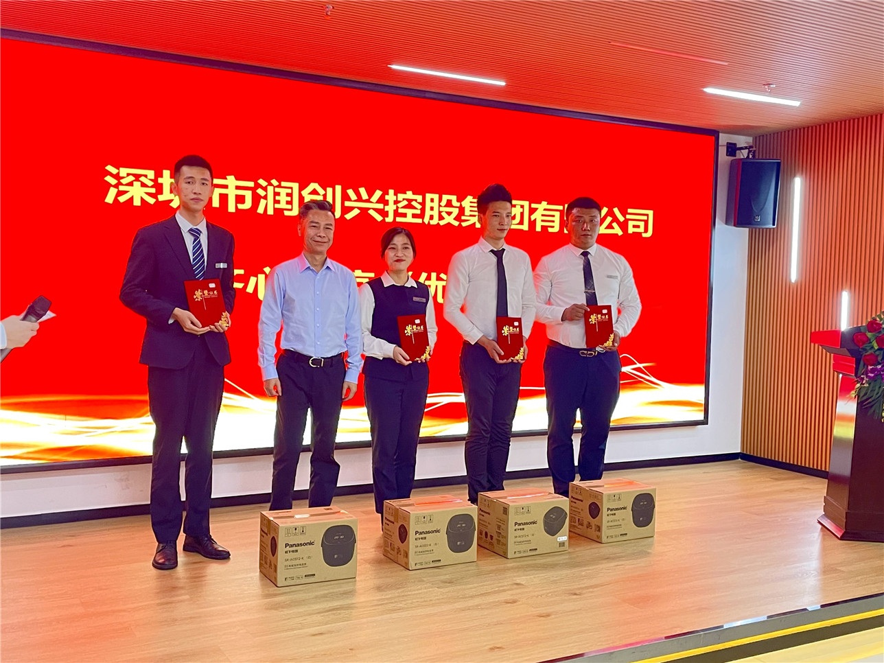 其次,頒發(fā)《優(yōu)秀個(gè)人獎(jiǎng)》,獲獎(jiǎng)名單:李占亮、呂汝佳、李青華、李耀明、李澤璇、李添、黎家富、李琳龍,由集團(tuán)公司副總經(jīng)理張海波,羅勇分別為獲獎(jiǎng)人員頒發(fā)《榮譽(yù)證書》和獎(jiǎng)品(1099元松下電飯煲一臺(tái));