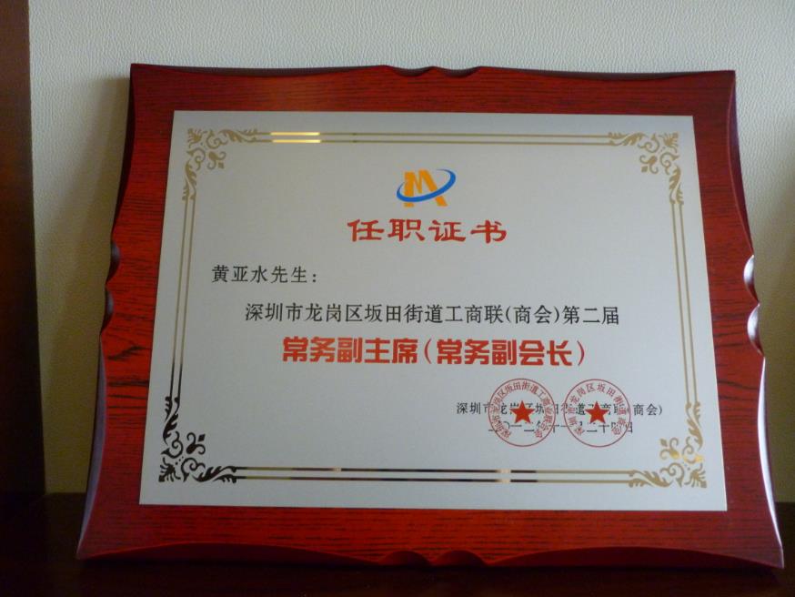 擔任深圳市龍崗區(qū)坂田街道工商聯(lián)常務(wù)副主席