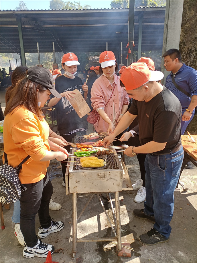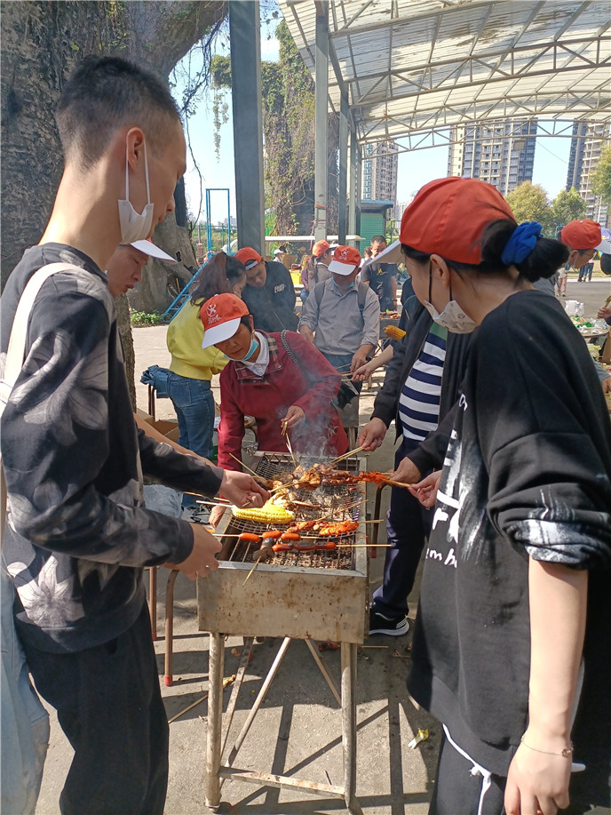 時間不知不覺到了中午,我們的午餐便是充滿樂趣的BBQ,準(zhǔn)備的食材和飲料一應(yīng)俱全。很快大家便分好了隊(duì)伍,有序的安排工作;區(qū)分食材、清洗、調(diào)制醬料、串制食材,大家配合默契,展現(xiàn)了友愛互助的團(tuán)隊(duì)精神。更有多才多藝的同事?lián)u身一變成了燒烤師傅,現(xiàn)場氣氛非常濃烈,大家一邊享受自己燒烤的美食,一邊聊著生活和工作中的一些趣事,歡聲笑語隨著縷縷炊煙縈繞回蕩空中,好不HAPPY。