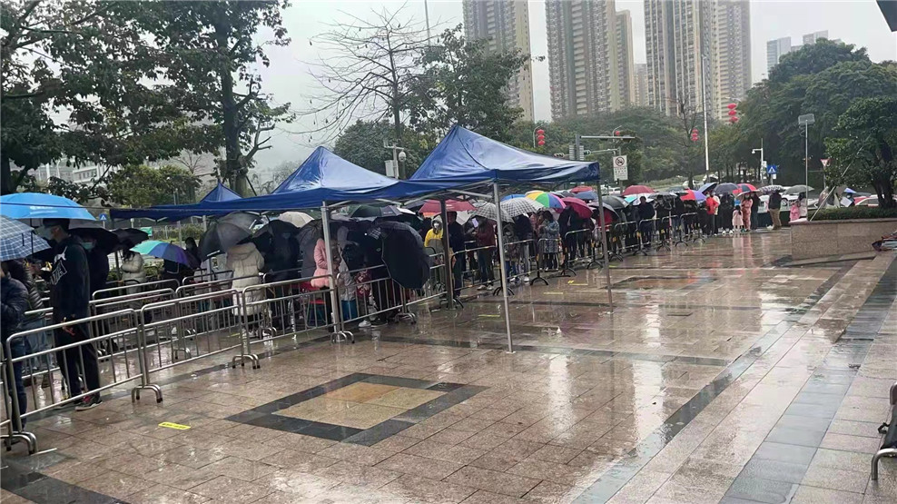 2月20日,是坂田街道核酸篩查工作最關(guān)鍵的時期,雖然是周日,但兩個管理處的全體員工放棄休息,一如既往的堅守崗位,配合街道辦進(jìn)行核酸采樣工作。由于是周末,排隊進(jìn)行核酸 檢測的隊伍從創(chuàng)匯國際中心一樓大堂,排到了創(chuàng)匯國際中心前面的廣場,當(dāng)天,刮風(fēng)又下著大雨,天氣特別寒冷,氣溫只有6度,社區(qū)群眾都打著傘,在寒風(fēng)大雨中排著長隊,情緒難免有點波動。為了確保群眾盡快有序完成核酸采樣,減少等候時間,我管理處員工冒著大雨和寒風(fēng),在隊伍中來回走動,指引社區(qū)群眾提前進(jìn)行核酸掃碼登記,維現(xiàn)場秩序,安撫大家的情緒。管理處還組織員工現(xiàn)場熬制姜茶,為工作人員及現(xiàn)場群眾送上暖暖的姜茶,一杯杯熱姜茶,讓連日奮戰(zhàn)在一線的醫(yī)護(hù)人員倍感溫暖,讓在寒風(fēng)和大雨中排長隊的群眾無不感動,讓在場所有人員感受到眾志成城,抗擊疫情的力量和決心。抗擊疫情,人人有責(zé),讓我們攜手同心,用信心構(gòu)建起抗擊疫情的長效疫苗,用實際行動貢獻(xiàn)自己的點滴力量,讓愛凝聚抗擊疫情的強(qiáng)大合力,迎戰(zhàn)疫情。