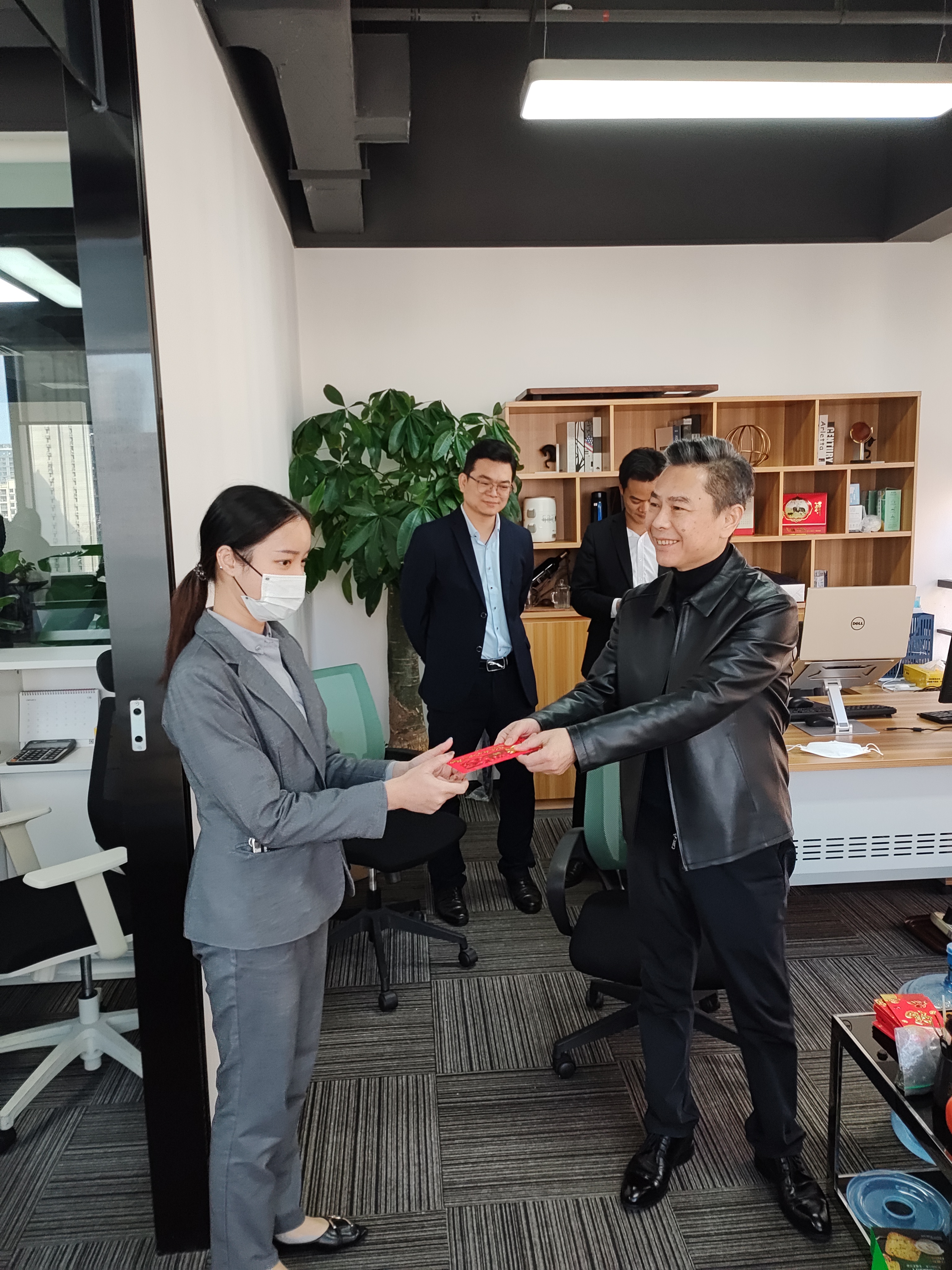 2023年1月31日(正月初十),深圳市潤創(chuàng)興控股集團公司正式開工,上午10點,集團公司總經(jīng)理吳椰軍、副總經(jīng)理張海波、副總經(jīng)理羅勇共同代表集團公司董事長到集團總部各部門、各下屬公司,各項目管理處派發(fā)新年利是,大家以最熱烈的掌聲和最飽滿的熱情迎公司新年開工,共同慶賀公司開工大吉!利是代表吉利和喜慶,這也體現(xiàn)了集團公司領導對員工的一份關懷之情,為集團公司每位員工送上新年的問候和真摯的祝福。集團今年派發(fā)的利是,每個都是人民幣800元,也寓意著潤創(chuàng)興集團開工大吉、大展宏圖、一帆風順、財源廣進。